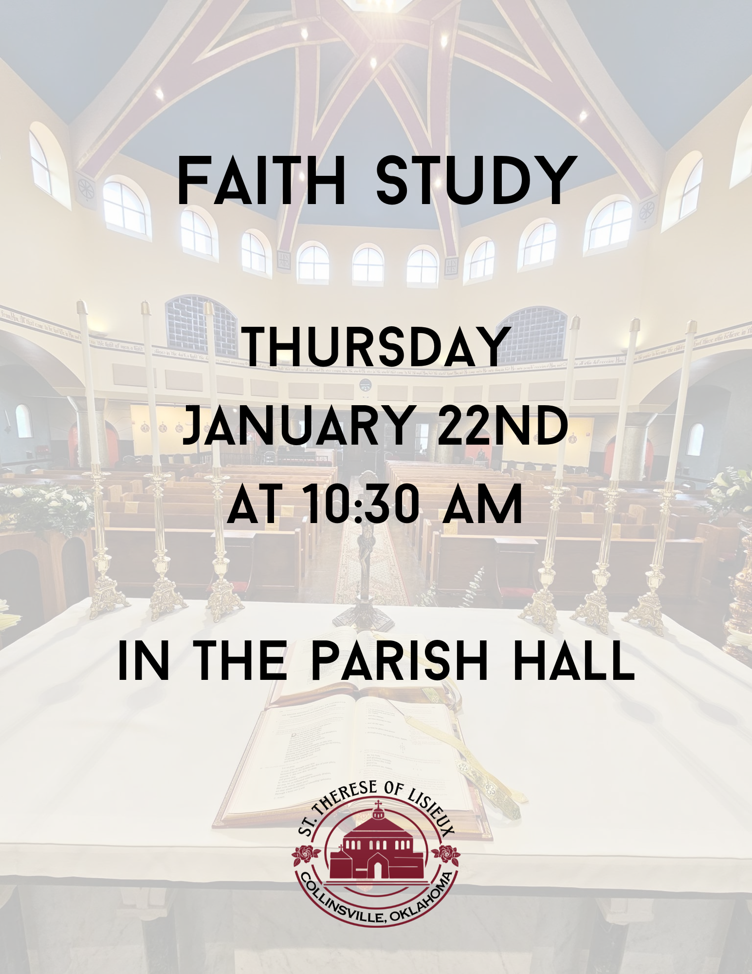 - Faith Study – Thurday, Jan. 22nd @ 10:30am, in the Parish Hall.