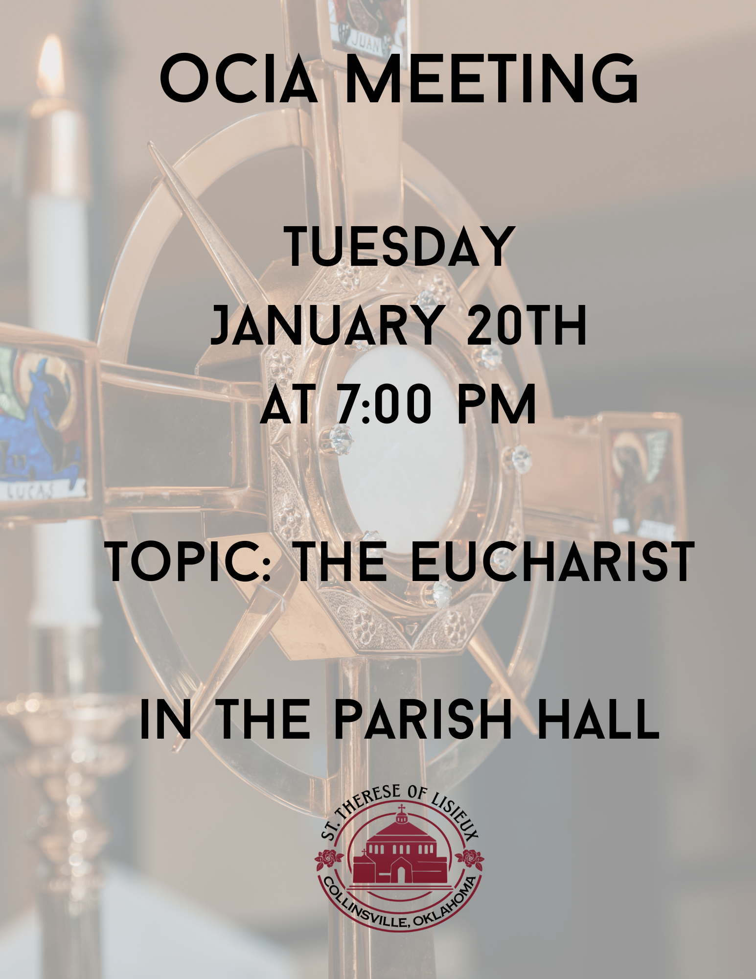 - OCIA – Tuesday, Jan. 20th @ 7:30pm, in the Parish Hall.