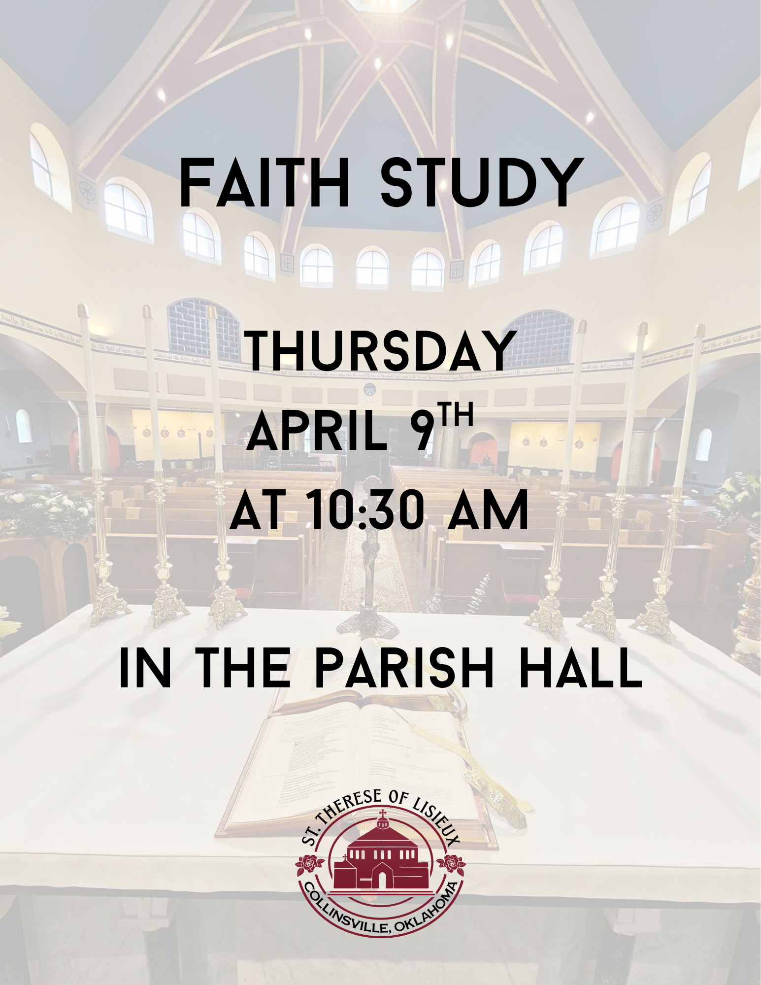 Faith Study – Thursday, April 9th @ 10:30am. In the Parish Hall.