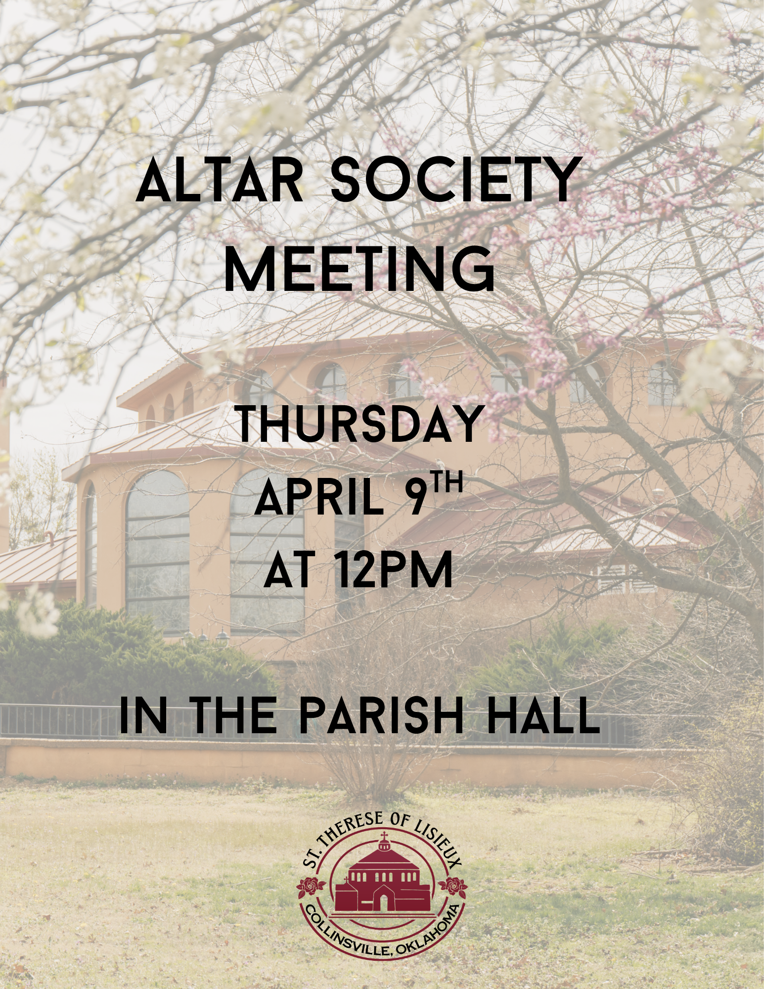 Altar Society Meeting – Thursday, April 9th @ 12pm. In the Parish Hall.